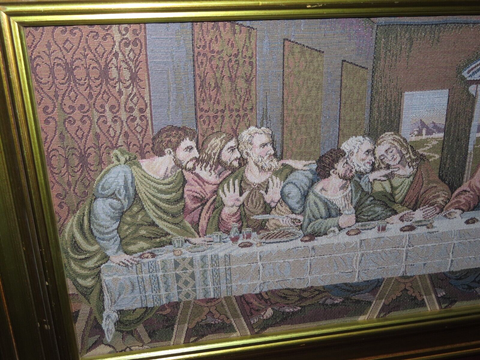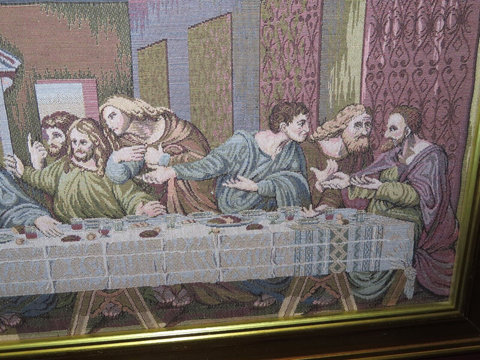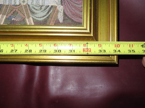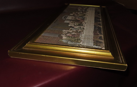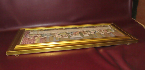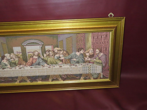 Vintage Gilt & Wood Framed Christian Tapestry - Jesus & Disciples/Apostles at the Last Supper