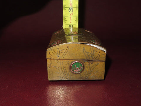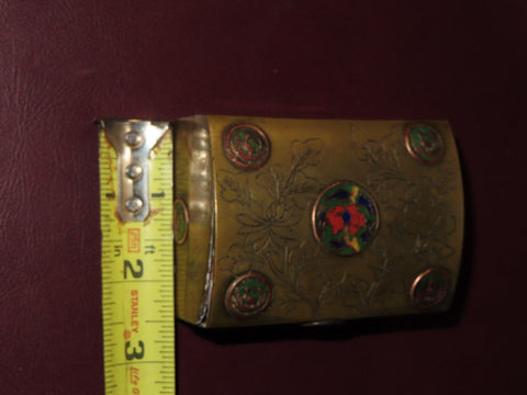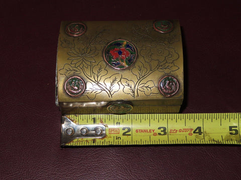 Vintage Hand Enameled Chinese Brass Flip Lid Floral Trinket Box - Sold As-Is